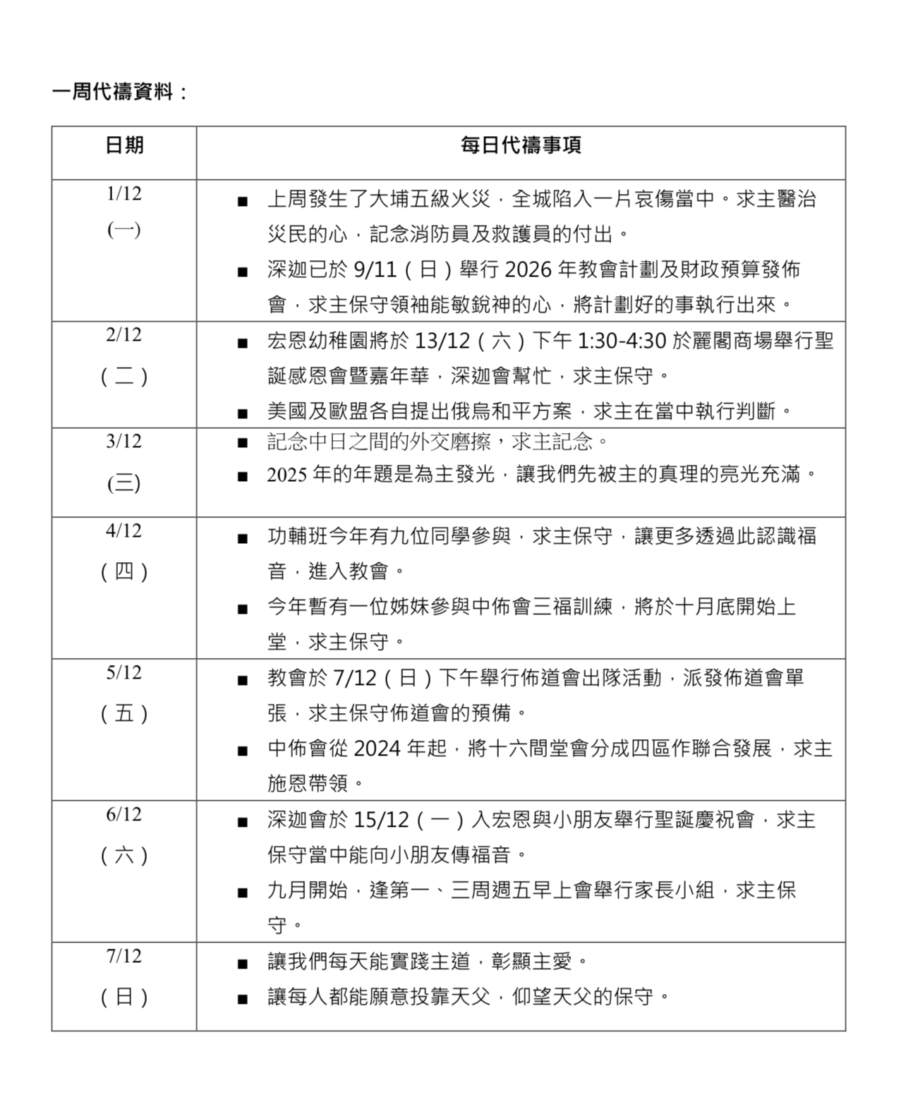 代禱事項