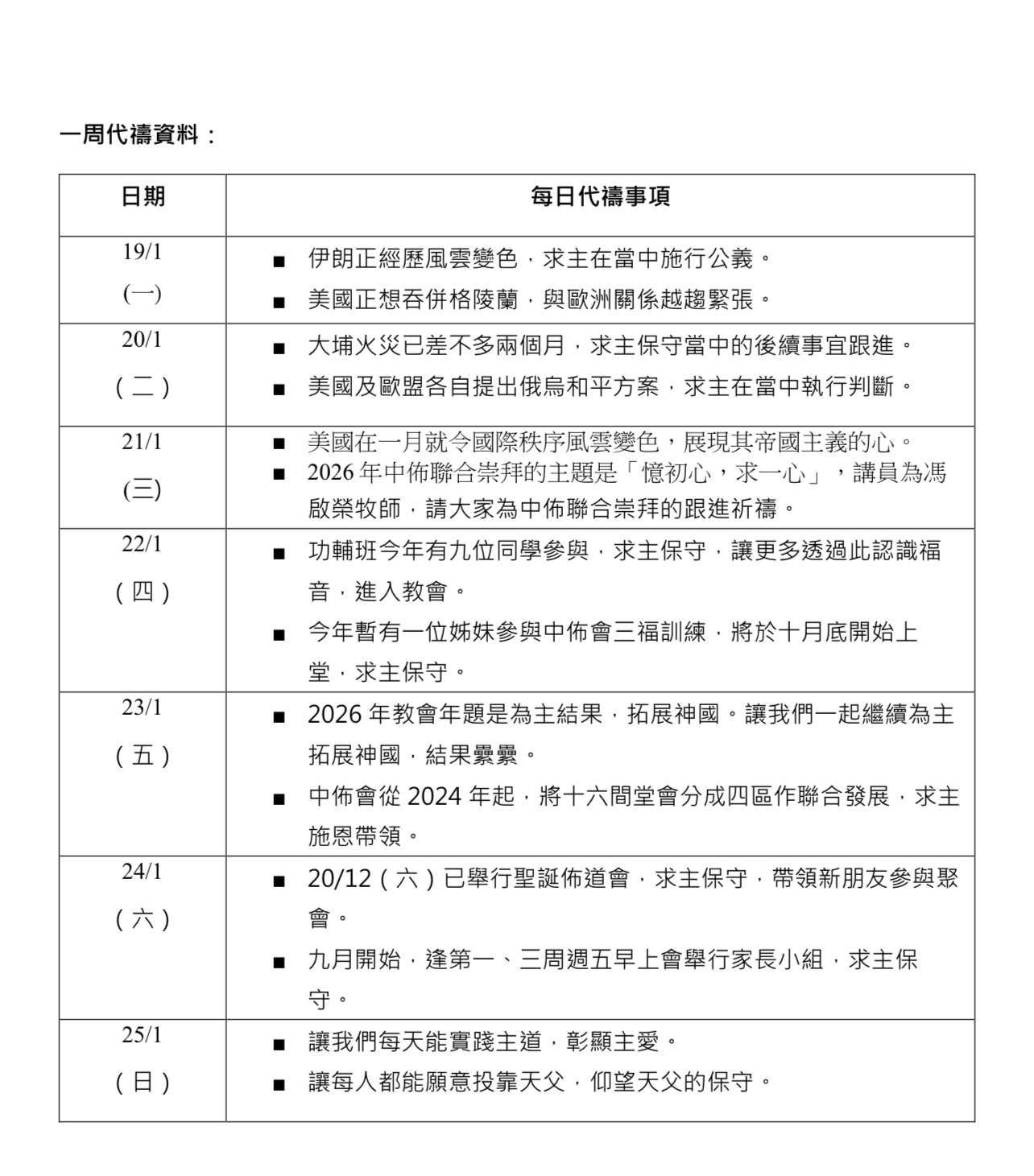 代禱事項