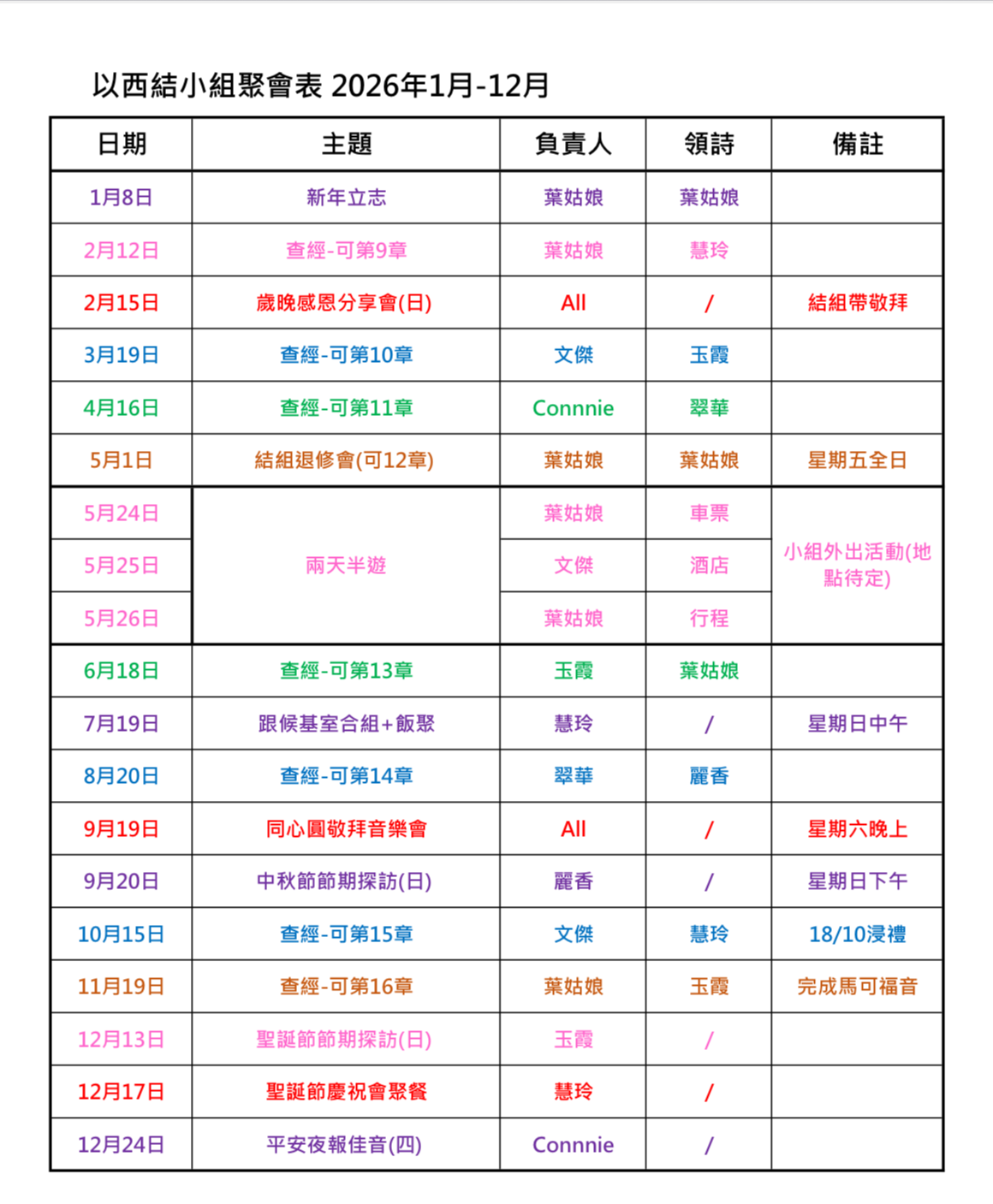 2026教會行事曆